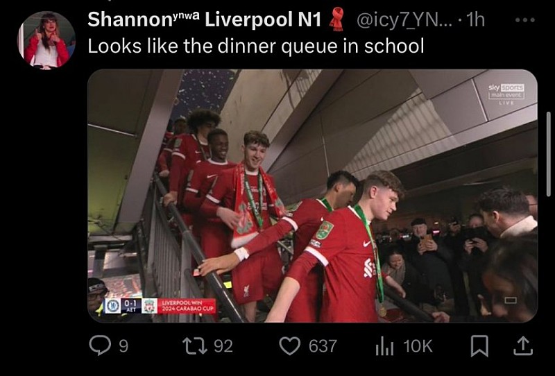 리버풀팬들 : 학교 급식줄 기다리는 거 같음