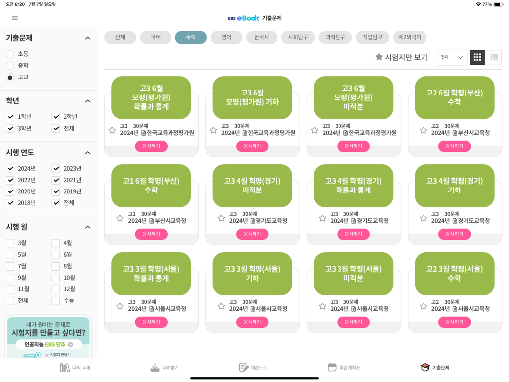 교과과정 문제집이나 기출문제