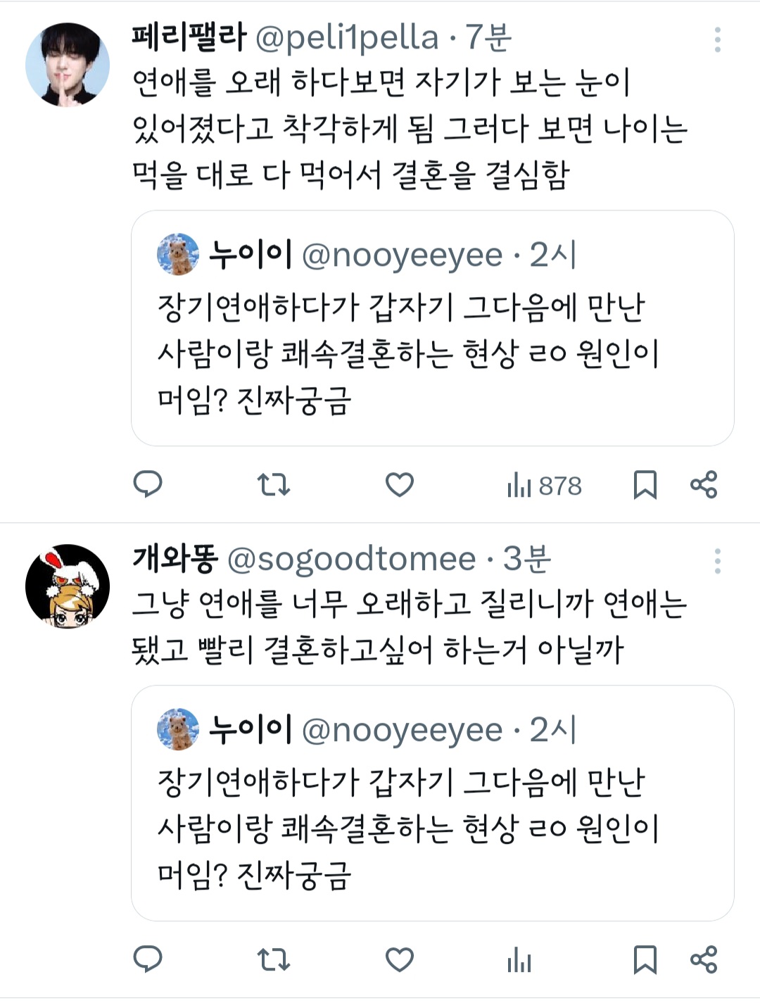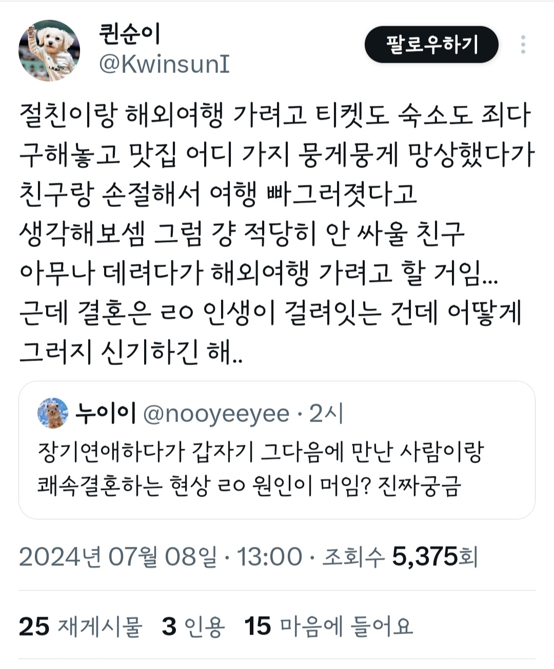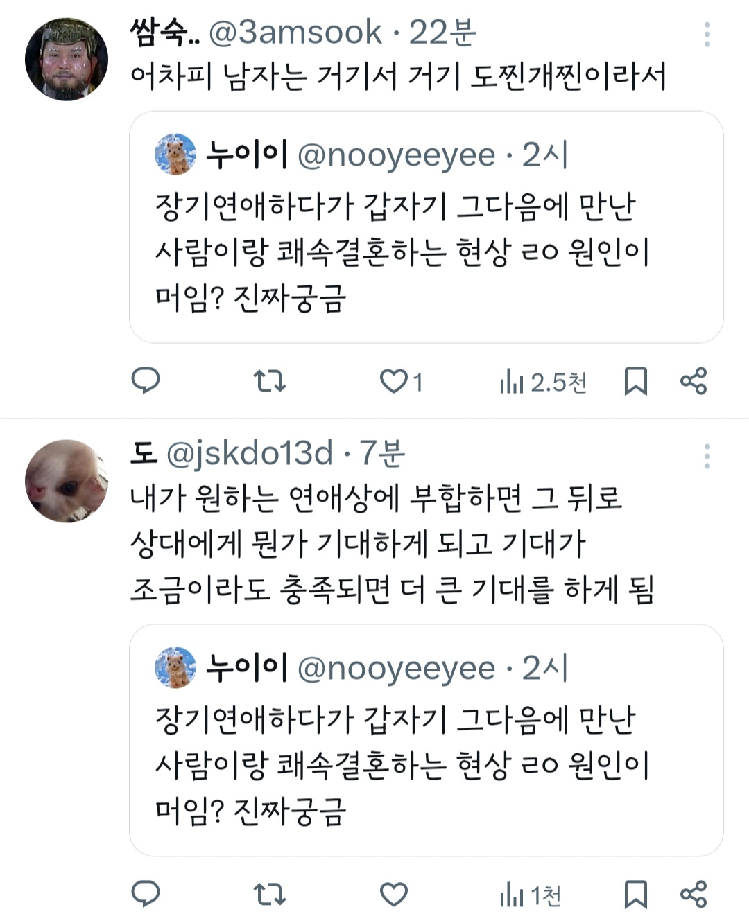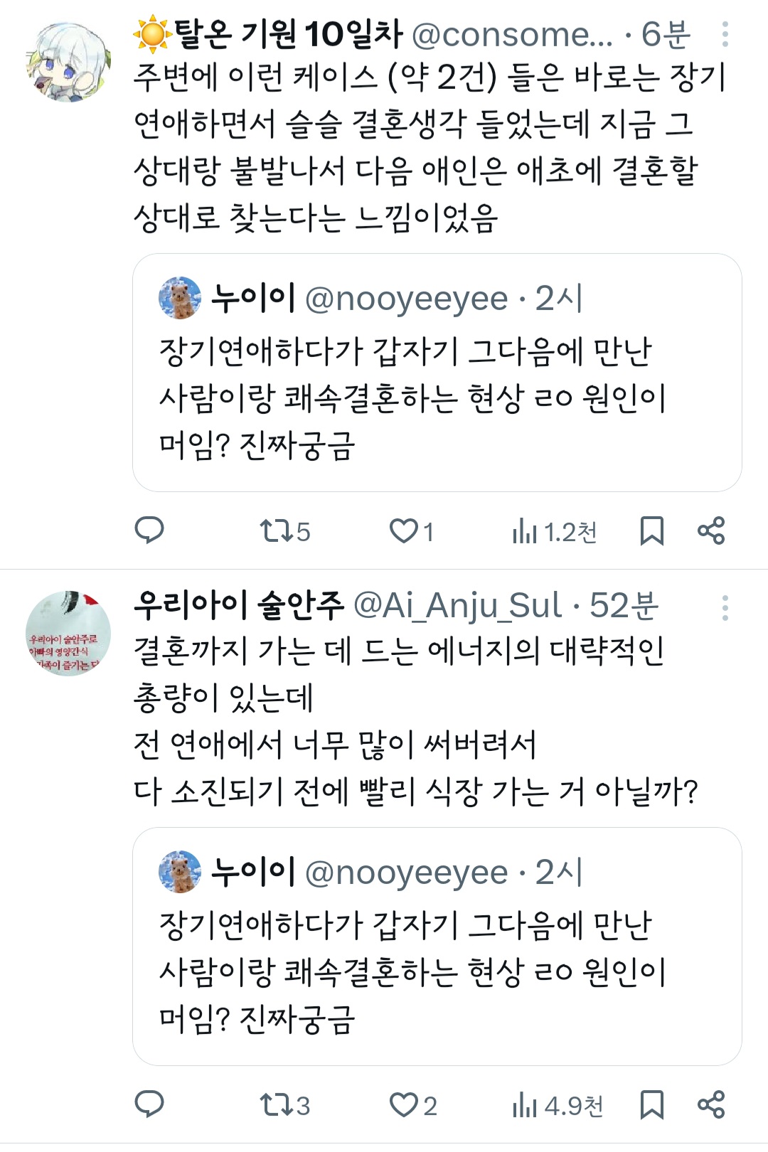 작성자튜브최고 작성시간 24.07.09 오래만나봤자 부질없어서 ㅋㅋㅋㅋㅋ나도 7년만나고 헤어졌어 그렇게 대단한 사랑도 없다는걸 느끼고 나니까 다음연애는 일년정도 만나다가 할거같음 + 나이차서