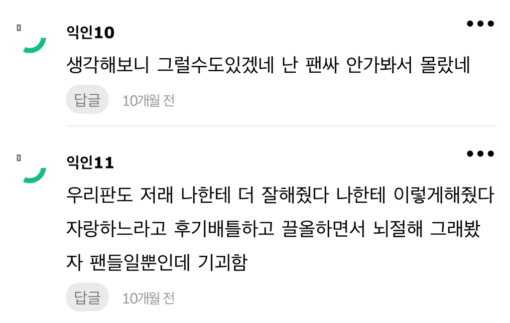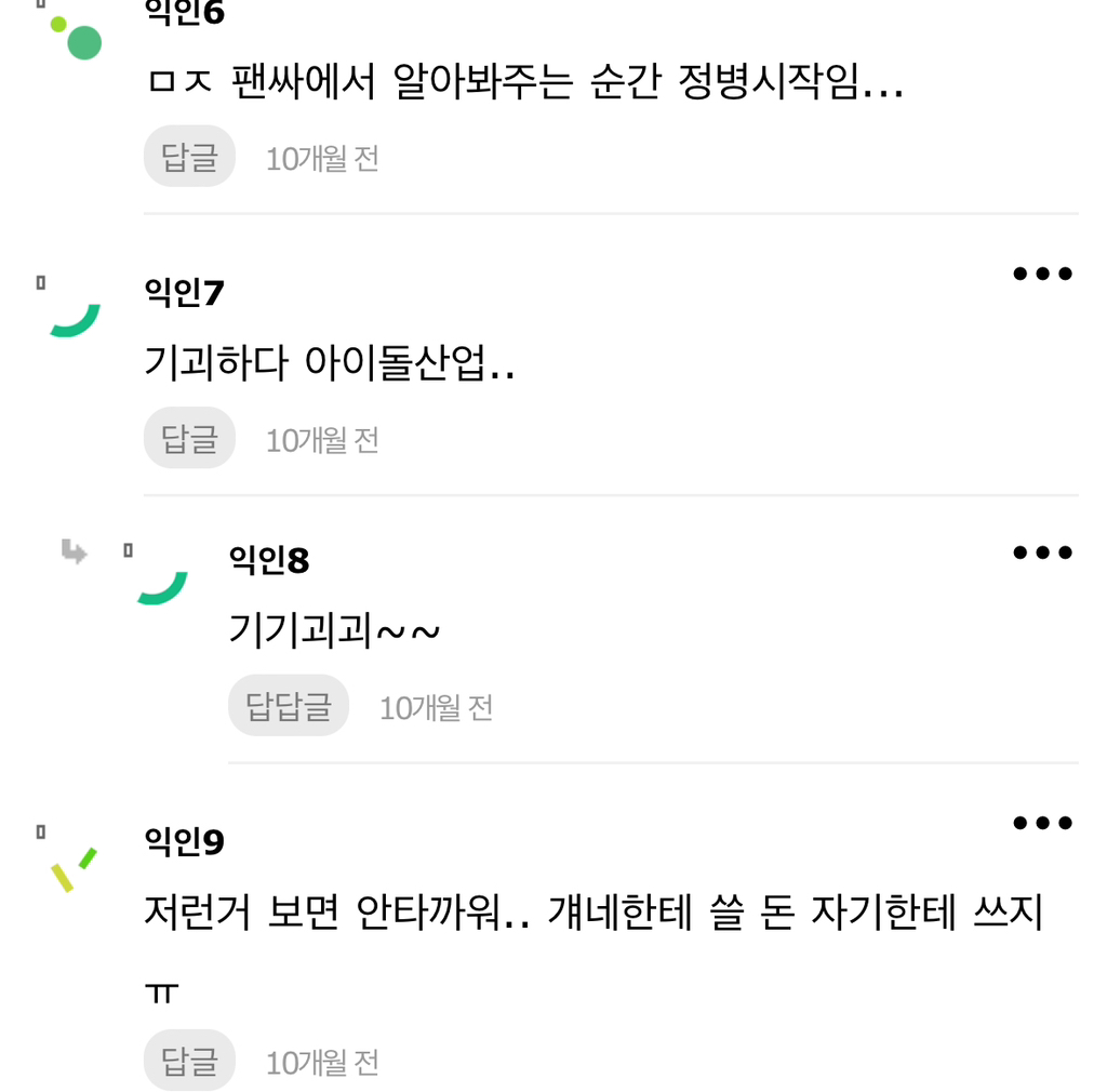 작성자콘쳡 작성시간 24.07.09 ㅇㅈㅉㅇ? 하는경우도 잇는데 이런반응이면 바로 탈덕하려나..?