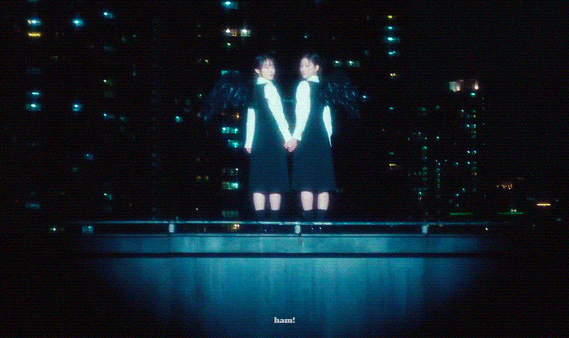 두명의 소녀가 손을 잡고 뛰어내리자마자