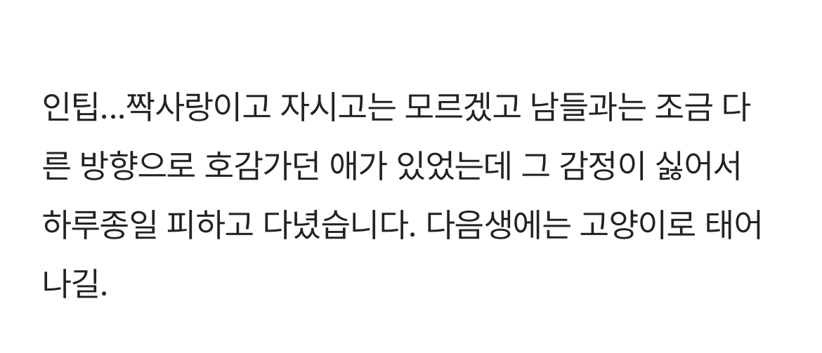 현실에서 누굴 좋아하는 걸 본적이 없음