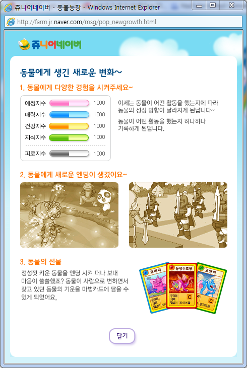 잘 키우면 받는 캐릭터 카드