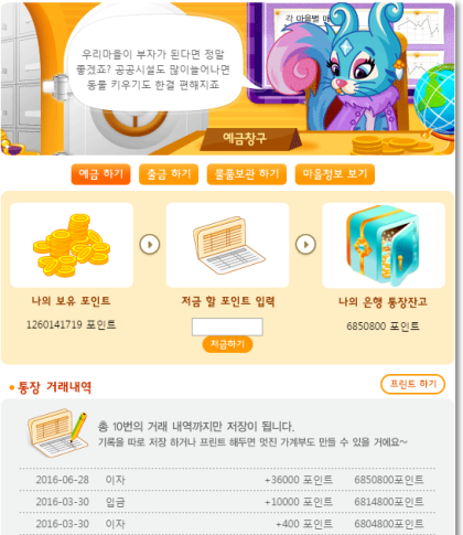포인트도 예금 넣을 수 있었는디