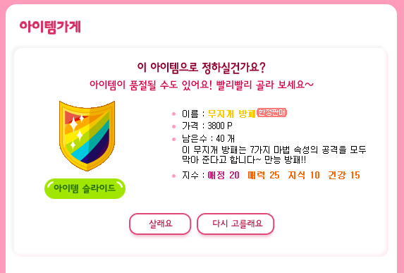 얘네도 매물이 얼마 없던걸로 기억..... 999999999나 포인트를 들여야만 살 수 잇엇음