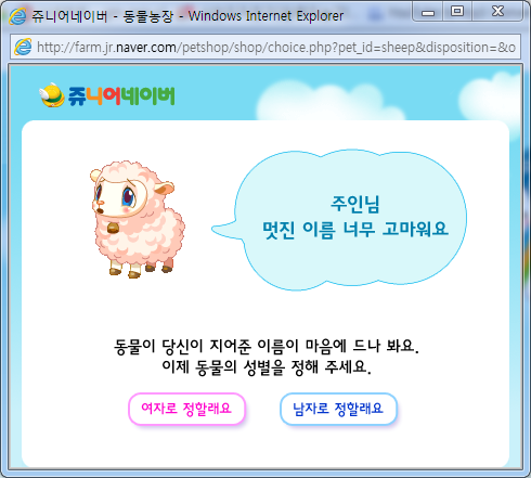 이름이랑 성별 정해서 농장으로 뽏여오기