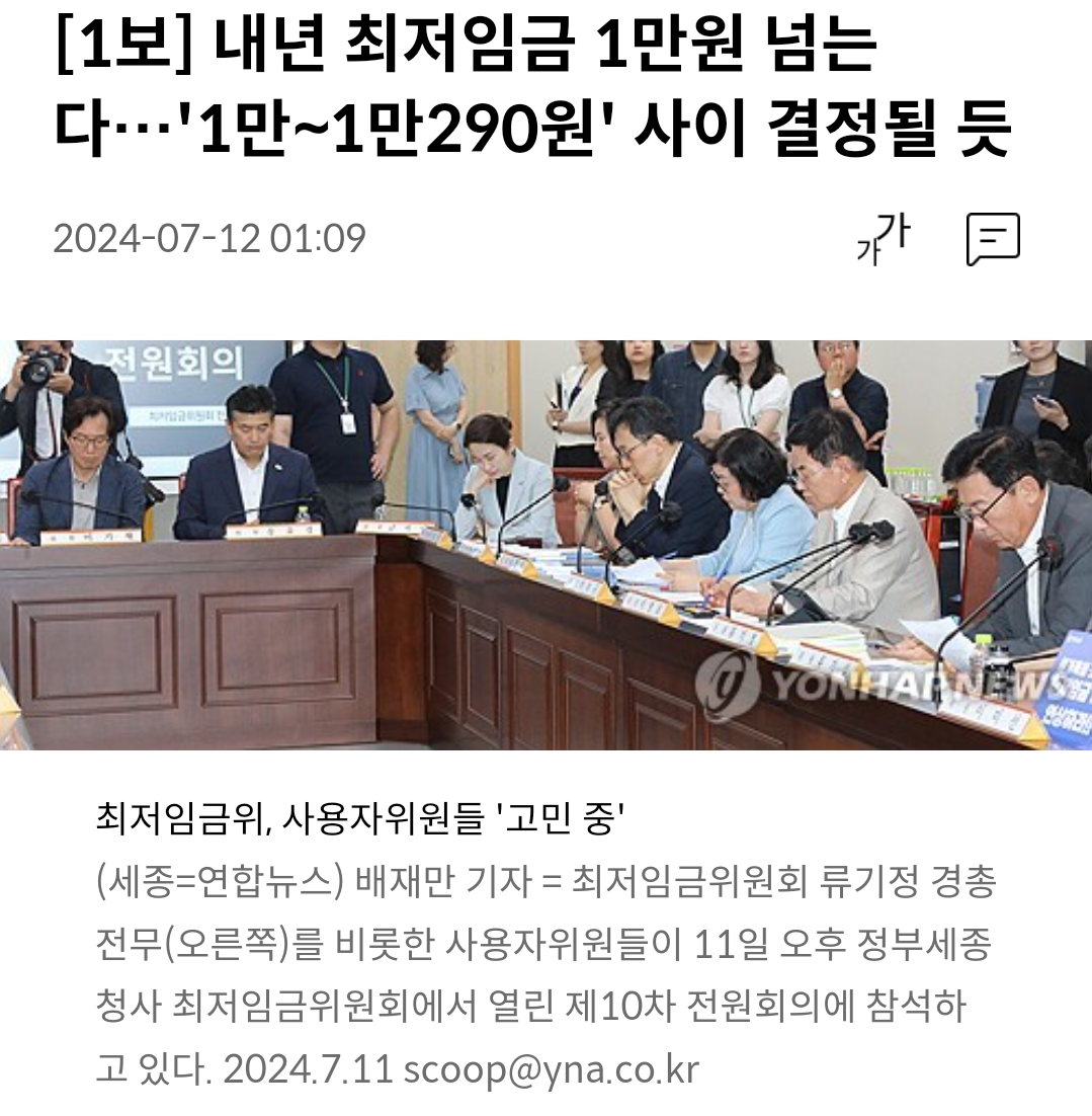 작성자어쪄라고 작성시간 24.07.12 올해 만원 넘었어야 했는데... 물가 오른거 생각하면 내년은 최소한 10500원은 돼야지