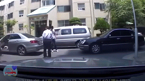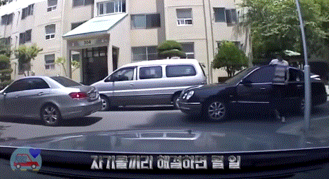 사고 확인하고 블박차로 오는 앞차 주인