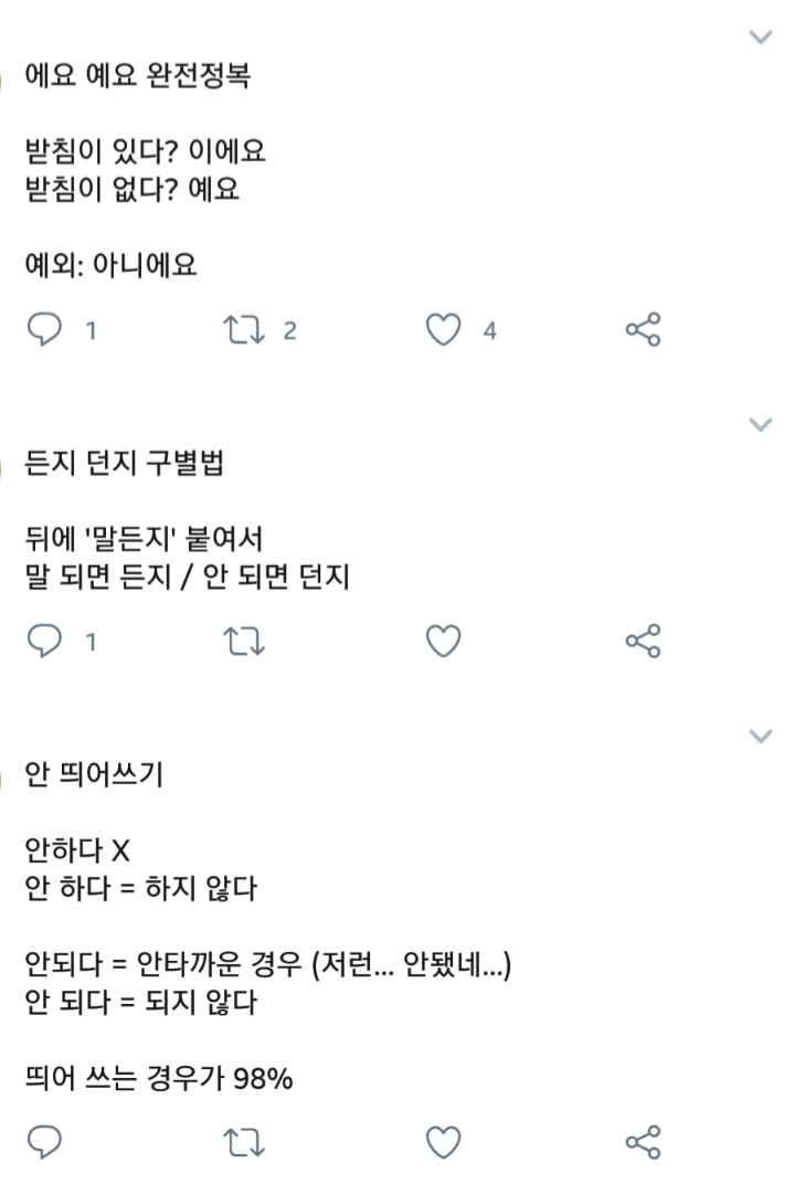 작성자이토록평범한미래 작성시간 24.07.15 나는 예요 가 아직도 어색해... 그냥 최대한 다른말로 바꿔씀ㅋㅋㅋㅋ