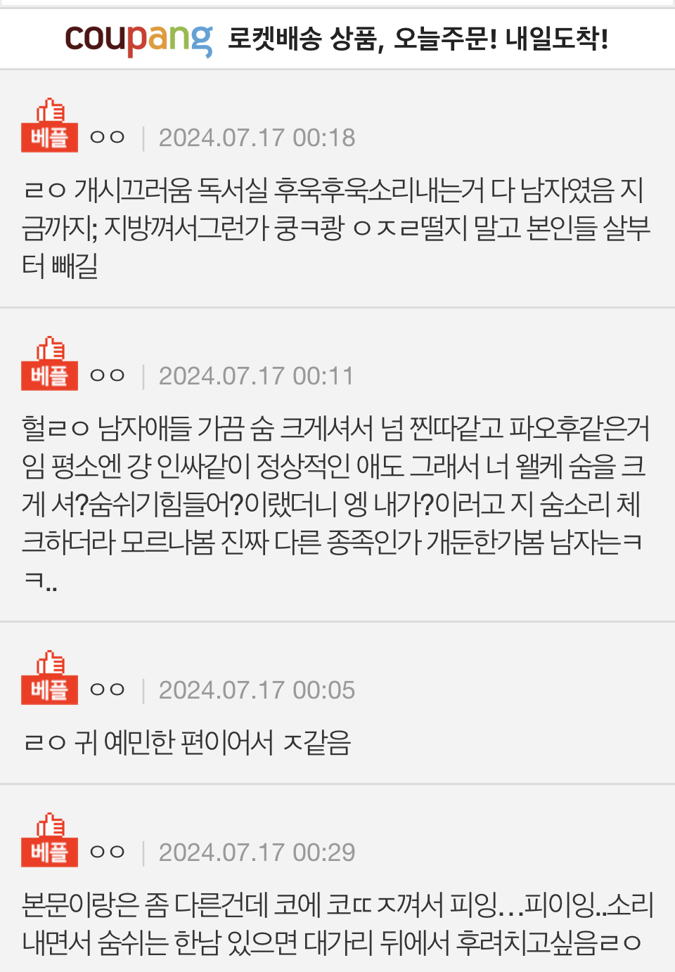 작성자여성의취업파트너 작성시간 24.07.17 아 레알 저번에 영화관에서 옆자리 한남 앉앗는데 숨소리 레알 영화를 방해함
