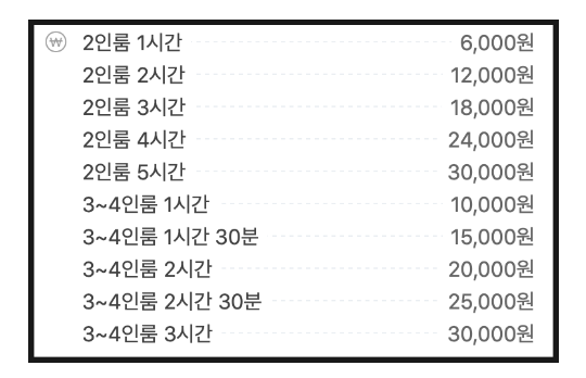 요금표인데 지점마다 다르거나 지금은 다를수도?