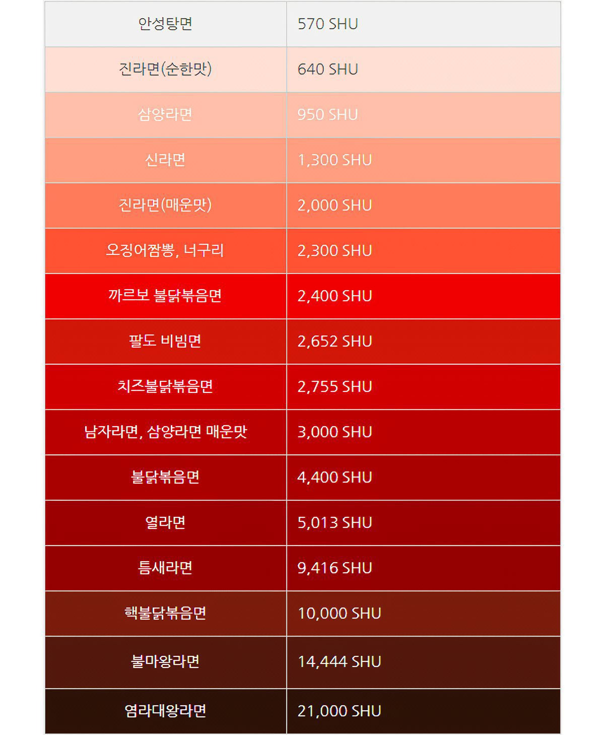 매운맛의 척도가 되어버린 신라면(1300SHU)