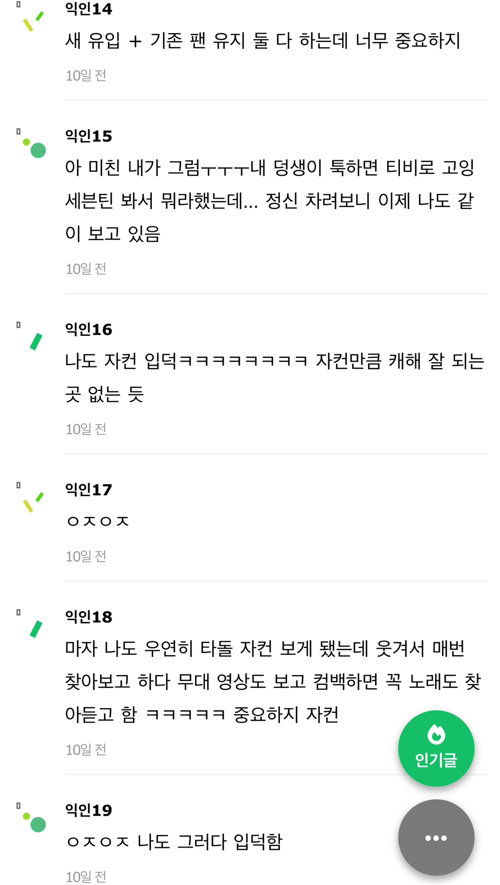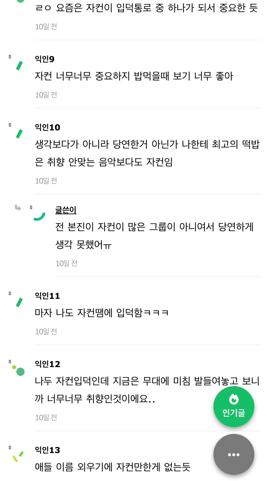 작성자도파민샤워 작성시간 24.07.17 내가 관심잇는 그룹 다 자컨 잼슴ㅋㅋㅋ 재미없으면 어느 선을 안 넘게 되는듯