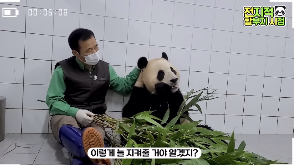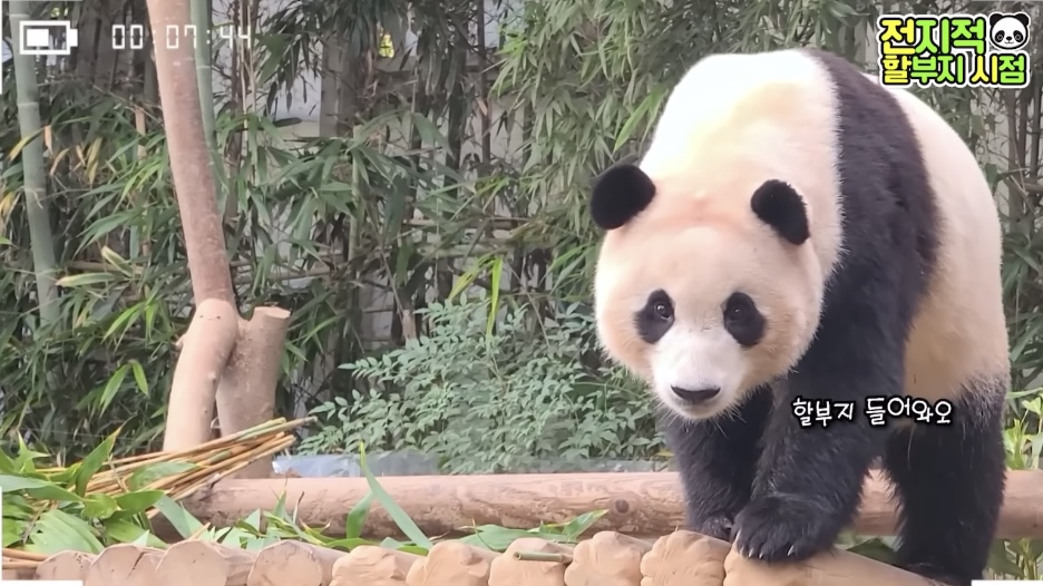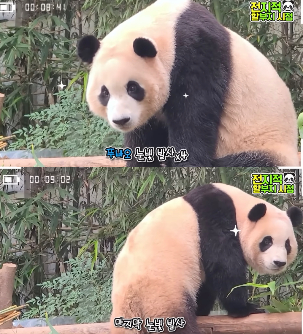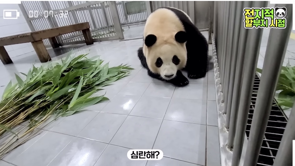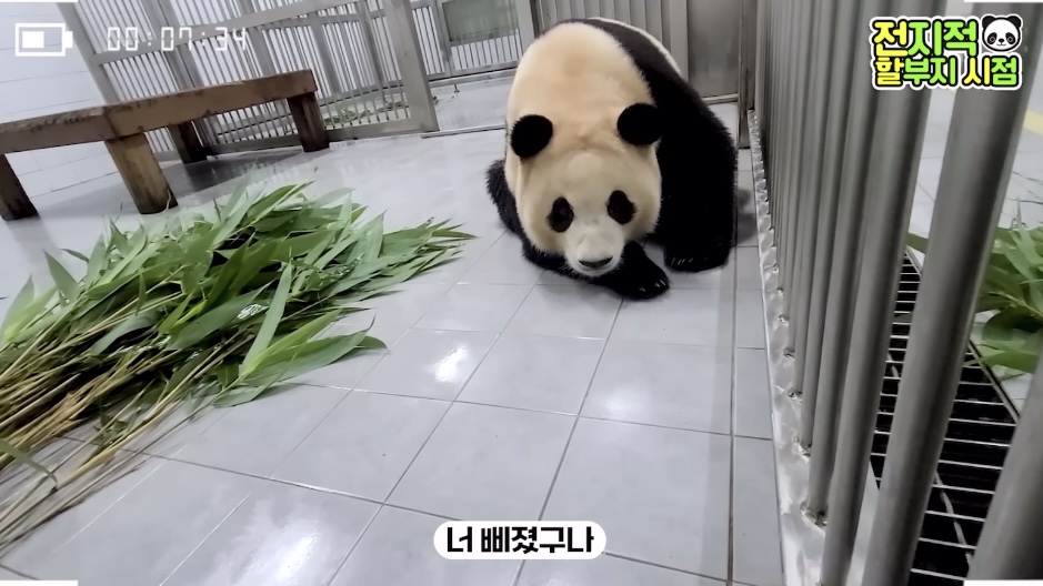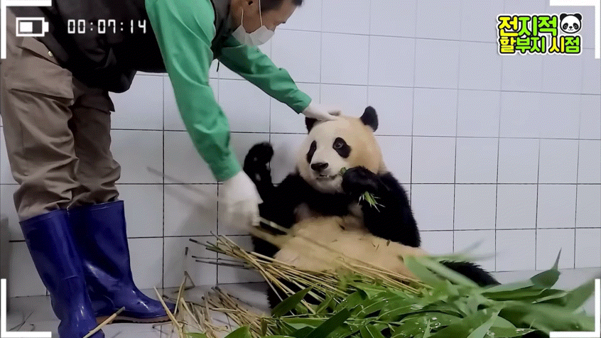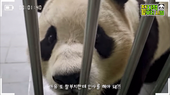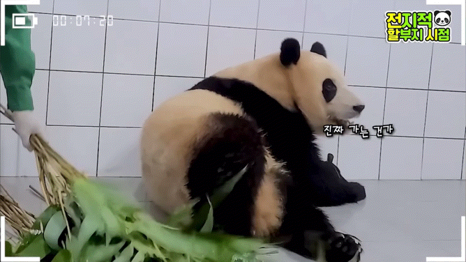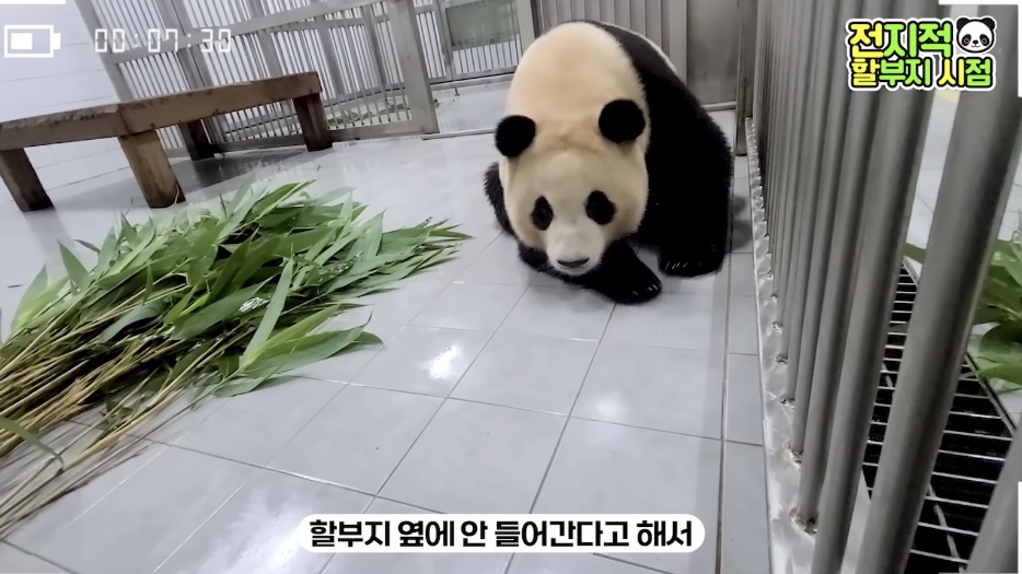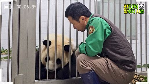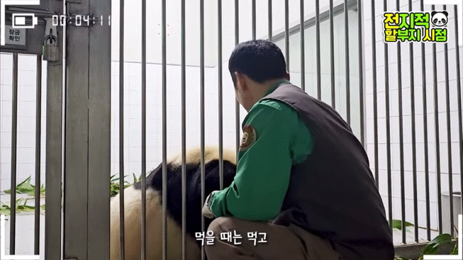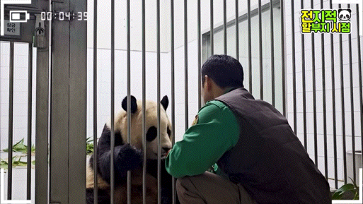 방사장에선 할부지가 가까이 와도 가만히 앉아서 고개만 돌아가는 푸🥺