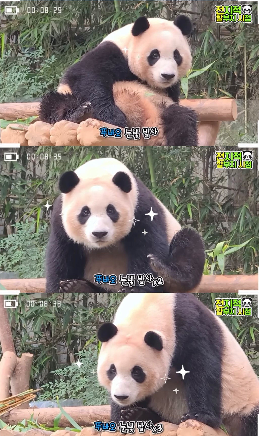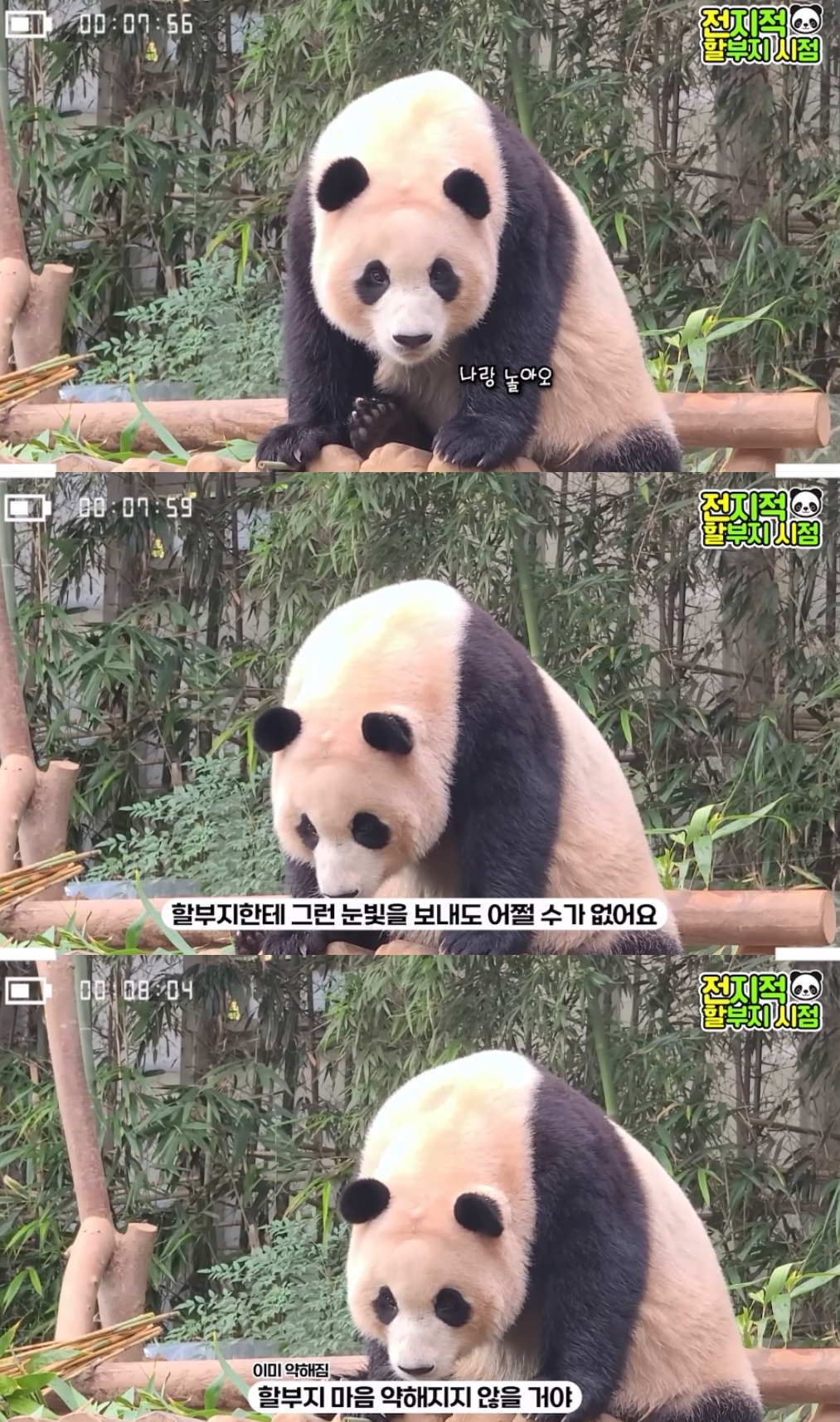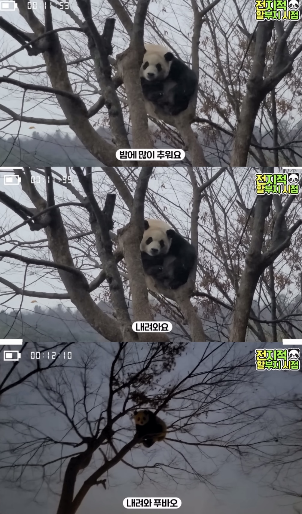 밝을때 올라가서 해가 다 질때까지 멀리서 아무리 불러도 안내려오니까 결국 방사장 안에 들어가신 강바오