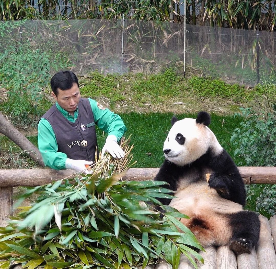 (위험한 이유:푸바오가 성체가 되면서 무게도 많이 나가고 손톱이 아주 날카로워져서 푸바오 입장에선 장난친다고 매달린다해도 사람 입장에선 위험할수있기때문에)