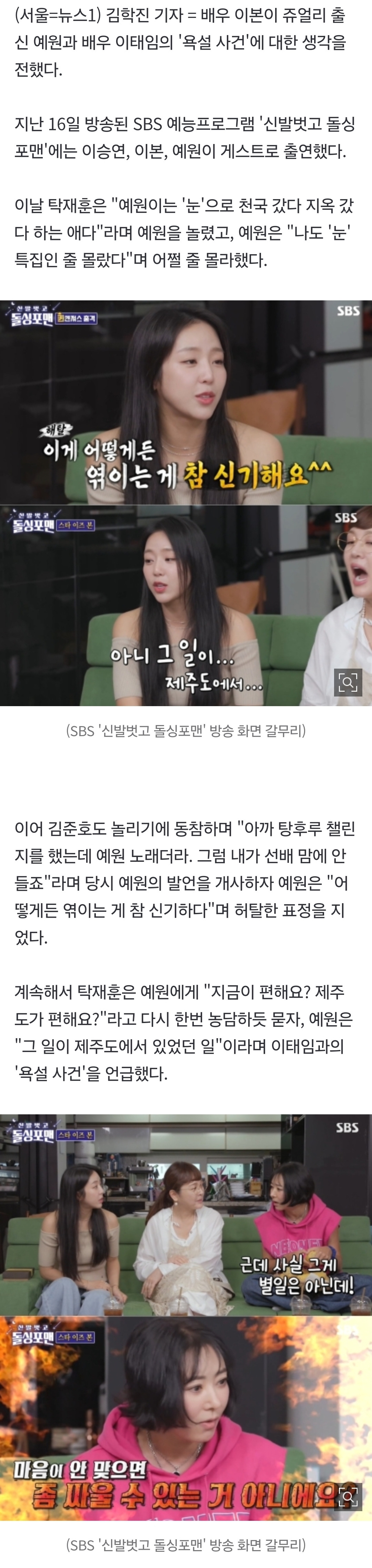 개저씨들이 게스트 불러놓고 10년도 다 되어가는 일(2015년에 있던 일이라고 함) 굳이 언급하며 유쾌한 척하는 게 어이가 없어서 퍼옴 당사자가 불편한 티 내는데도 끝까지 물고 늘어짐 결국 같이 나온 다른 여자 연예인들이 다독여주고 끝남