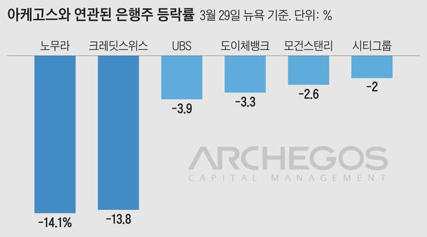알려진 바로는 크레딧 스위스는 약 7조원, 노무라 3조 6천억원 , 모건 스탠리는 1조원이상 잃은것으로 알려졌다.