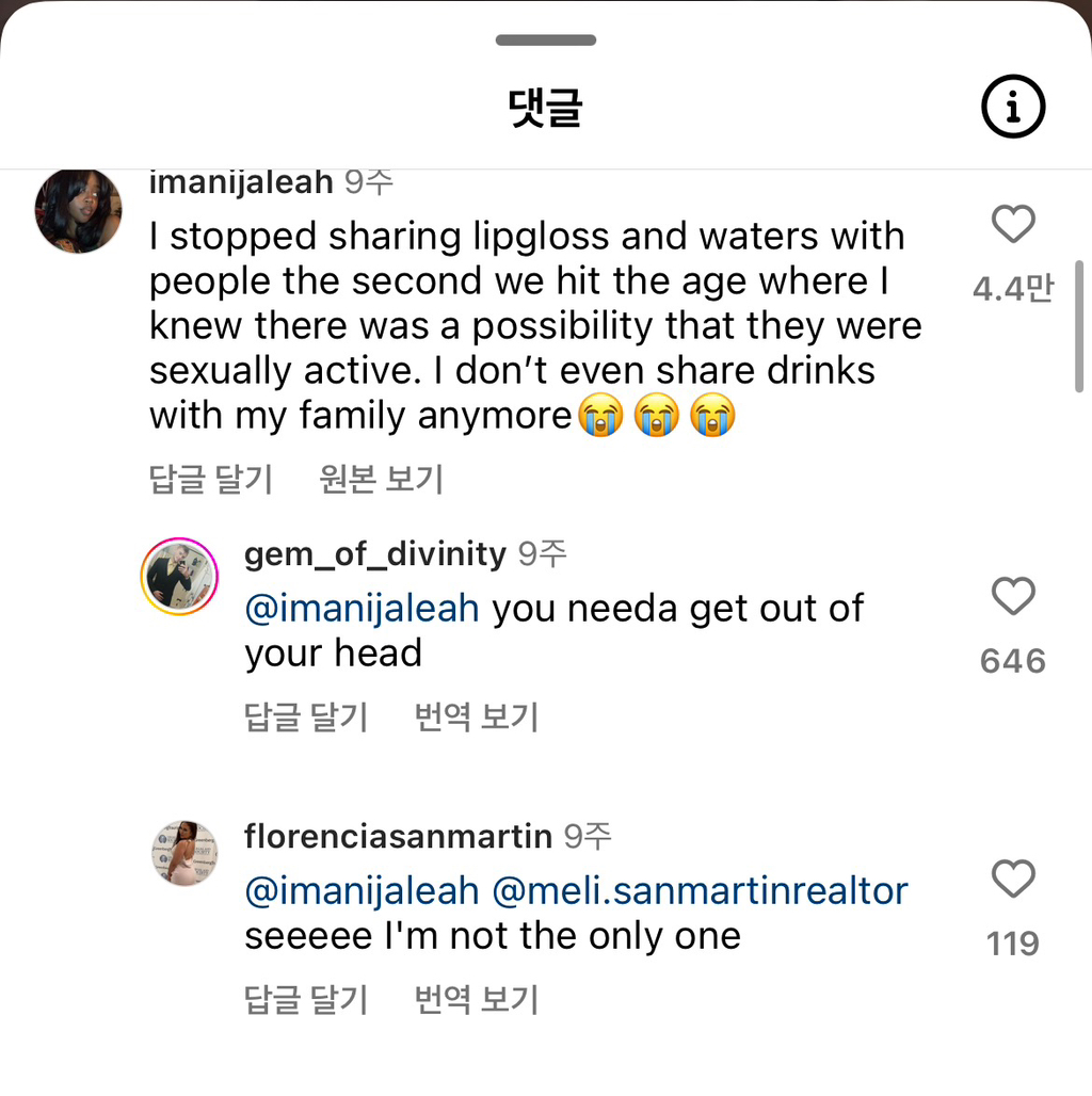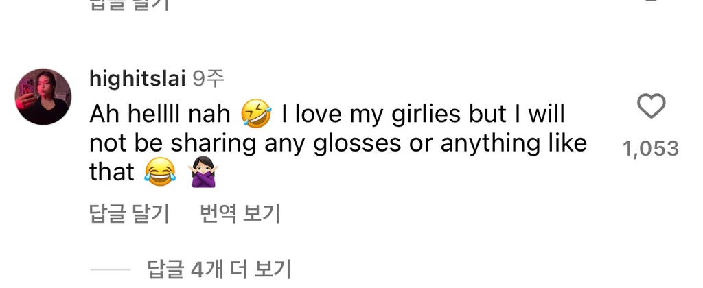 나는 내 친구들 사랑하지만 립스틱이나 다른것을 공유하지않을거야