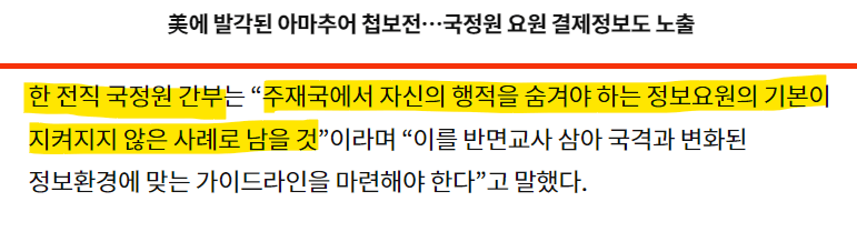 "정보요원의 기본이 지켜지지 않은 사례로 남을 것"