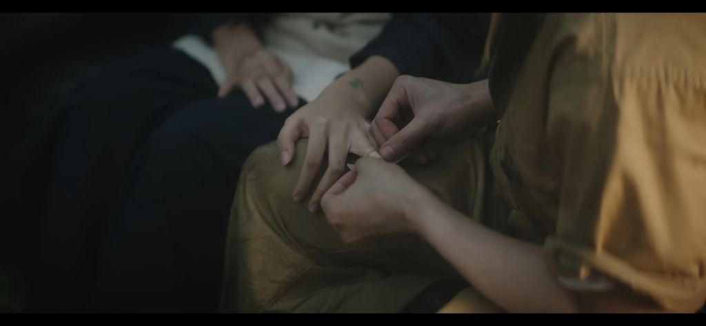 다친 데에 밴드 붙여줌