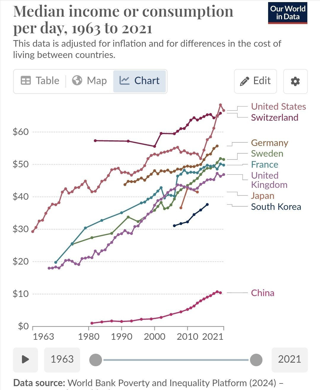 1. 중위 임금 변화 ( 세계 은행 2024년 빈곤 및 불평등 플랫폼 )
