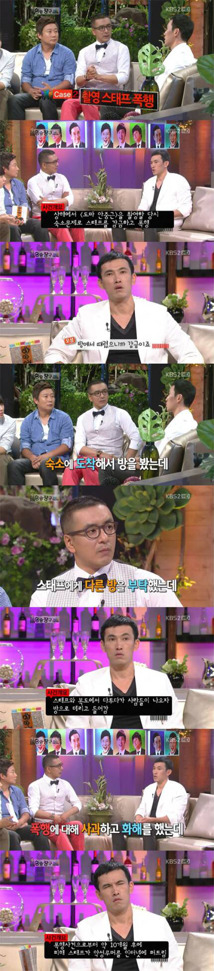 유오성은 먼저 때린건 잘못이니 그 스태프에게 사과하고 서로 좋게 화해도 했고 촬영도 잘 마쳤다고함.