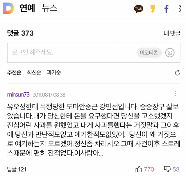 로도 만족합니다. 이젠 유오성씨한테 공개 사과와 합의금 따윈 필요없으니 앞으로 정직하게 사시길 바랍니다.