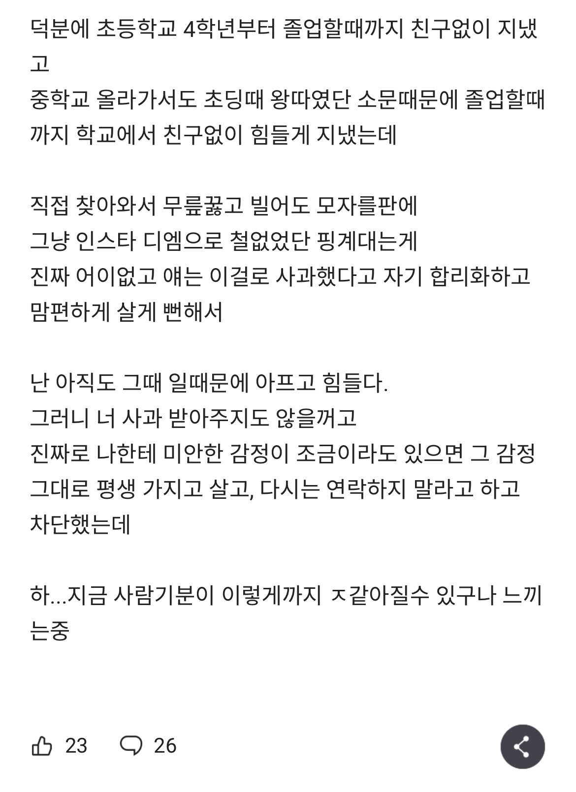 나중에 왕따가해자로 밝혀져도