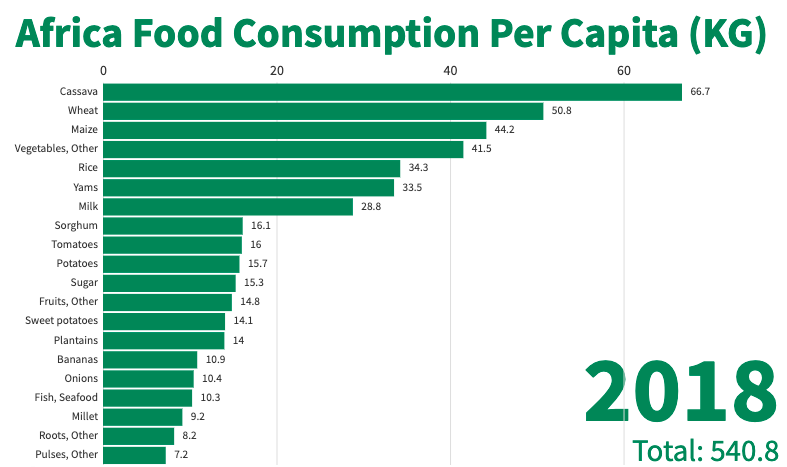 아프리카는 1위가 카사바라는 작물 2위가 곡물임