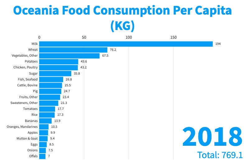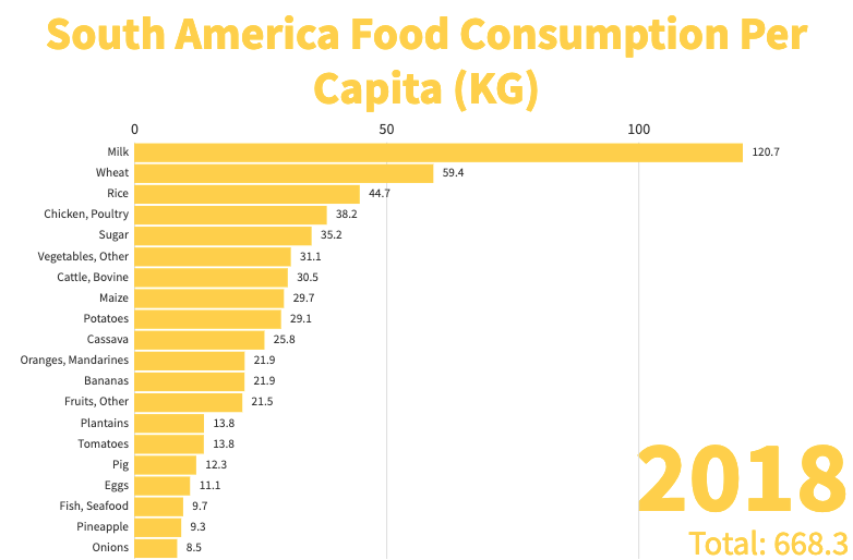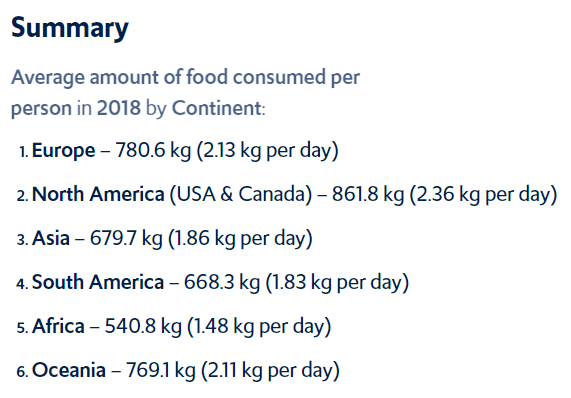 이건 각 대륙별 1인당 음식 소비량임