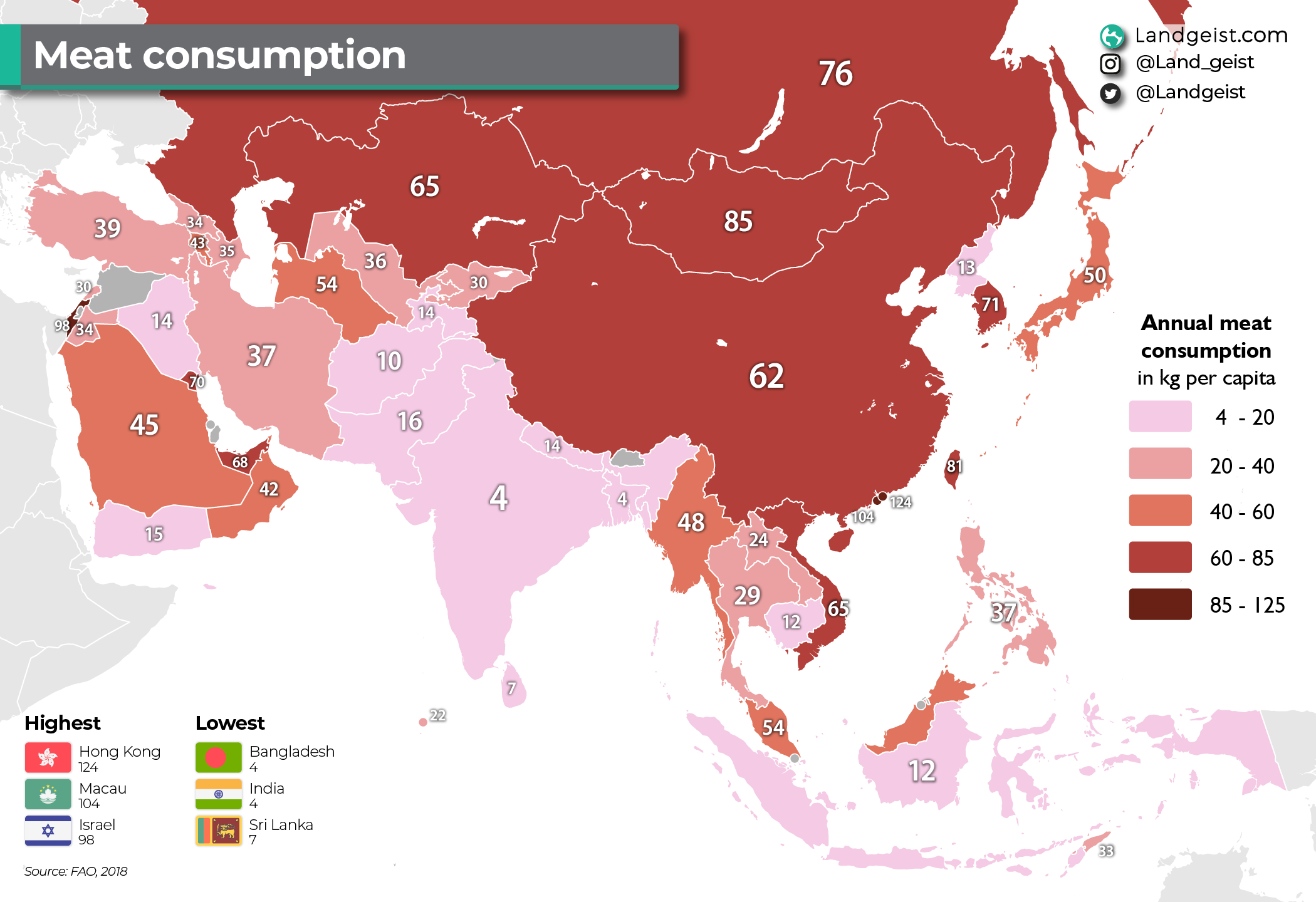 [흥미돋]완전 의외인 전 세계 고기류 소비량 1위 국가 + 채소 소비량 그리고 총 식료 소비량 (우리나라 몇위게???)