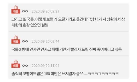 [스크랩] [흥미돋]한남 썸탈때 국룰 (공감 200%) 작성자방에모기가있냐|작성시간24.07.23|조회수11,863 목록 댓글 46 글자크기 작게가 글자크기 크게가 출처 : 여성시대 구루푸 ㅋㅋ학원다녓노 진짜아으ㅋㅋ손도 ㅈㄴ 차이안나늠데 맨날 손대보고^^~기여워 쪼꼬매 ㅇㅈㄹ 다음검색 스크랩 원문 : *여성시대* 차분한 20대들의 알흠다운 공간 현재 게시글 추가 기능 열기 북마크 공유하기 신고 센터로 신고 댓글 댓글 46 댓글쓰기 답글쓰기 댓글 리스트 작성자참참치 | 작성시간 24.07.24 그래도 저땐 판타지에 부응이라도 하려고 노력하는데 작성자F A K E R | 작성시간 24.07.24 뻐큐머거ㅠㅠ 작성자강고앵이 | 작성시간 24.07.24 아 시발 진짜. ㅗ나와 답댓글 작성자강고앵이 | 작성시간 24.07.24 토나와인데 오타도 적절하게 났네 작성자한별이짱 | 작성시간 24.07.24 하 현타온다..^^ 댓글 전체보기