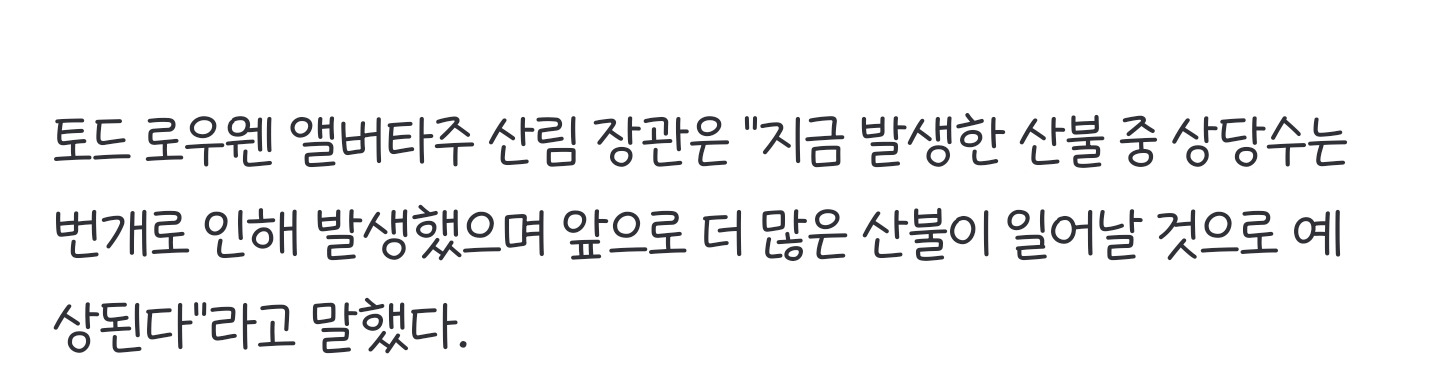 [여시뉴스데스크]캐나다 로키산맥 국립공원 산불…주민·방문객 2만5천명 대피 작성자너너뉘기야|작성시간24.07.24|조회수1,133 목록 댓글 7 글자크기 작게가 글자크기 크게가 출처: https://n.news.naver.com/article/001/0014825349캐나다 로키산맥 국립공원 산불…주민·방문객 2만5천명 대피산불 수백건 잇따라…"대부분 번개로 인해 발생 추정" 로키산맥 등 캐나다 서부 지역에서 수백건의 산불이 발생해 주민과 방문객 등 2만5천여명이 대피했다. 23일(현지시간) AP통신에 따르면 캐나n.news.naver.com전문 출처로 다음검색 현재 게시글 추가 기능 열기 북마크 공유하기 신고 센터로 신고 댓글 댓글 7 댓글쓰기 답글쓰기 댓글 리스트 작성자DE카페인 | 작성시간 24.07.24 헐 ㅜㅜ 작성자찹쌀빙고 딸기크림 | 작성시간 24.07.24 헐 작성자Ssap가능 | 작성시간 24.07.24 헉…..번개라니 작성자Theweeknd | 작성시간 24.07.24 안돼 ㅠ 저기 동물들도 많이 사는데 작성자프렌치토스트 | 작성시간 24.07.24 더 큰 피해 없어야 할텐데....더 많은 산불이 일어날 것으로 예상된다니... 댓글 전체보기