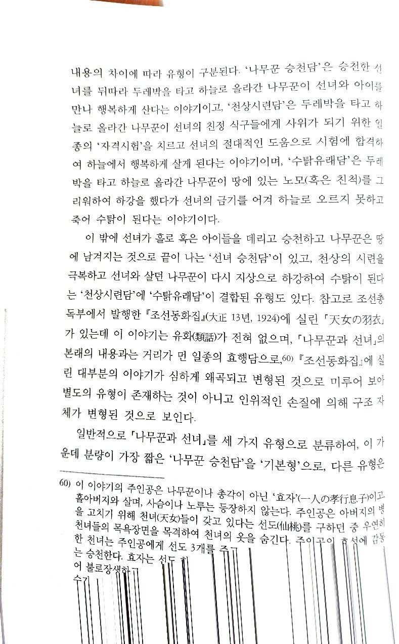 그런데 나무꾼이 이를 어겨서 망하는 내용이다. 천상시련담은 이러한 금기를 깨긴 깼지만 천상에서 시련을 겪어 청산하는 내용이고 수탉유래담은 그런 거 없이 망하는 내용이며 나무꾼승천담은 가장 근본 없는데 아무튼 해피엔딩 내용이다. 책에서는 수탉유래담을 기본 베이스로 삼았다.