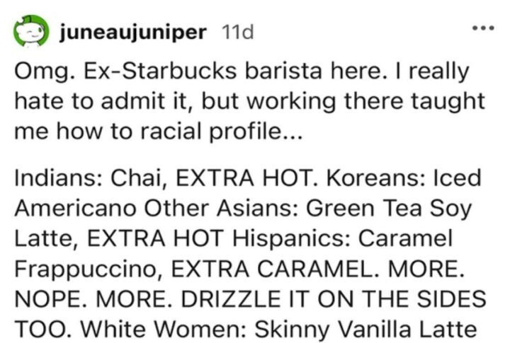 (해당 글 작성자도 '난 이런식으로 구분하는거 정말 싫어하지만 내 경험상 인종별로 이렇게 나뉘긴하더라'라고 쿠션한번 넣었음)