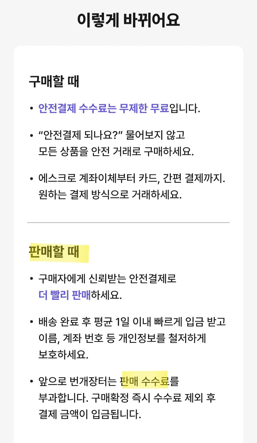 [기타]실시간 이제 안전결제 의무라는 번개장터.jpg 작성자가나다사|작성시간24.07.25|조회수79,645 목록 댓글 164 글자크기 작게가 글자크기 크게가 출처: 여성시대 가나다사판매자 입장에선 최악수수료도 판매자 부담이라고 함계좌이체 시도할시 서비스 제한판매자 부담 수수료 3.5% 다음검색 현재 게시글 추가 기능 열기 북마크 공유하기 신고 센터로 신고 댓글 댓글 164 댓글쓰기 답글쓰기 댓글 리스트 작성자바람의기사 | 작성시간 24.07.26 ㅋㅋㅋ 휴대폰 중고 130만이면 수수료만 4만 얼마네? 작성자ㅁㄴㅇㄹㄱㄷㅈㅂ | 작성시간 24.07.26 와3.5;;; 작성자자이언처 | 작성시간 24.07.26 극혐이다 ㅅㅂ 작성자애국보수 | 작성시간 24.07.26 아씨 물건 빨리 다 팔려여하는데ㅠㅠㅠㅠㅠ 작성자덜일하고많이 | 작성시간 24.07.27 하 편해서 썼는데ㅠㅠ 대체제 당근 중나 뿐인가... 댓글 전체보기