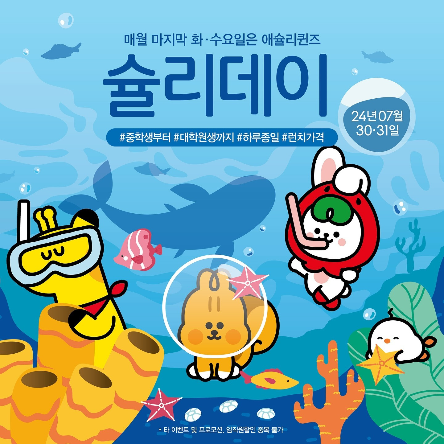[흥미돋]이번달(24년 7월) 30~31일 애슐리 가시는 학생분들은 꼭 학생증 가져가서 런치가격으로 할인받으시길...