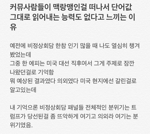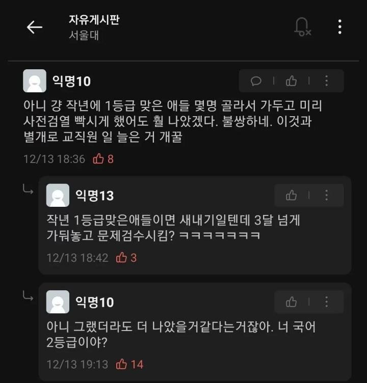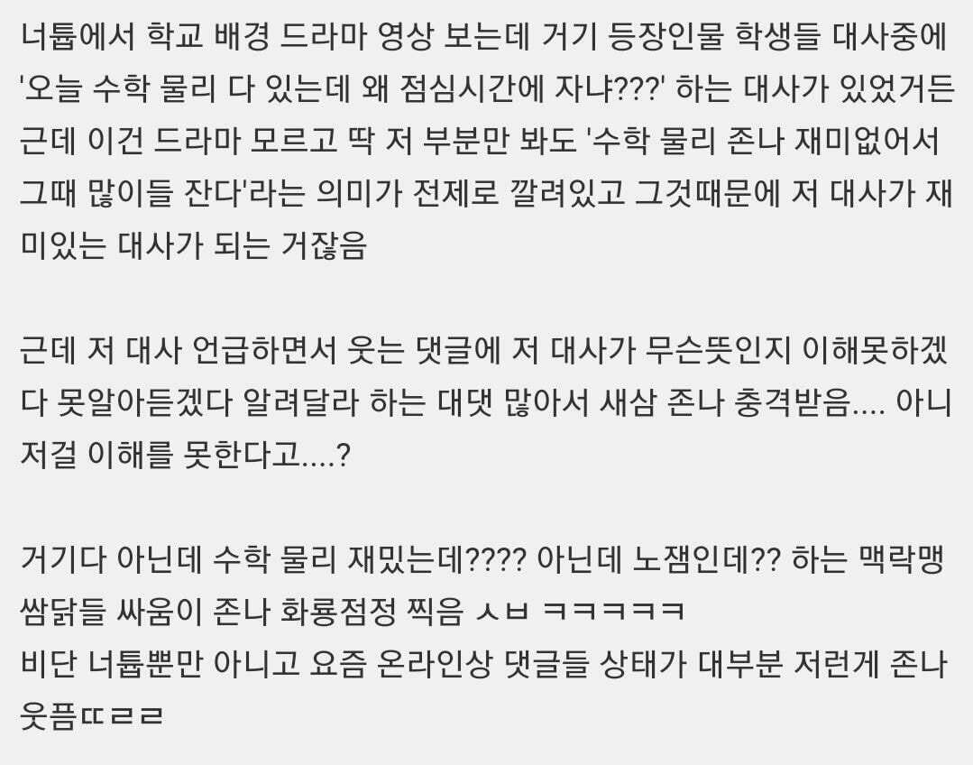 작성자도서관책임시보호전문가 작성시간 24.07.26 이젠 저런 사람들 그냥 웃김ㅋㅋ개인적으로 제일 어이없었던건 이런 맥락맹에 대한 게시글에 맥락맹 댓글써놓고 맥락맹 싫다라는 댓이였음ㅋㅋㅋㅋ