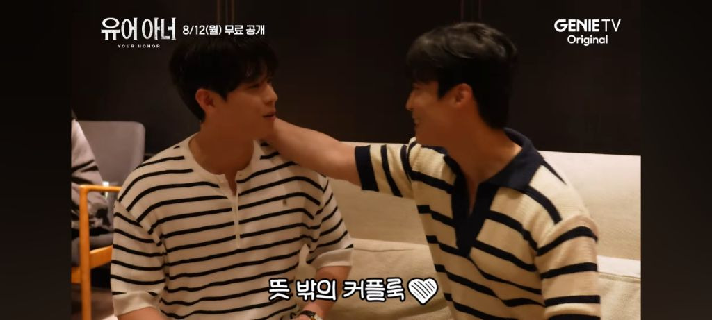 주변 배우들이 둘이 커플룩 입었다고 하니까 키갈 각도 잡음