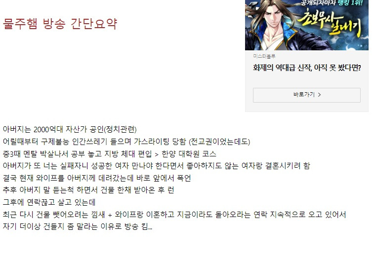 (폭로를 하는 이유 : 아버지가 방송을 못하게 막으려해서ㅇㅇ)