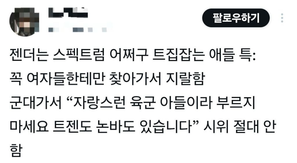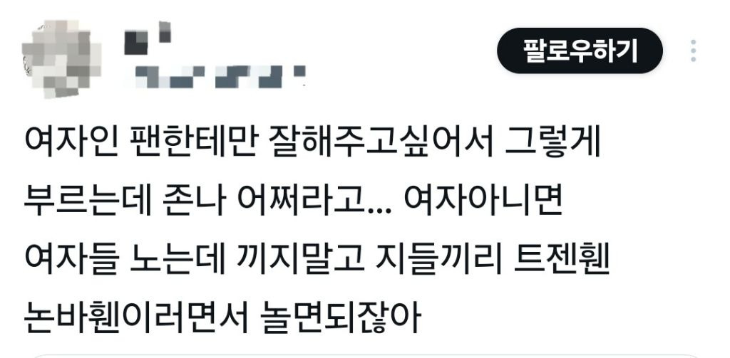 근데 트위터 롤링한테 지랄하는 양놈들처럼 트젠에 대해 비판하면 지랄하면서 사람을 무슨 히틀러로 만들었는데 요새 좀 트젠비판하는쪽도 많이 늘어난듯 -