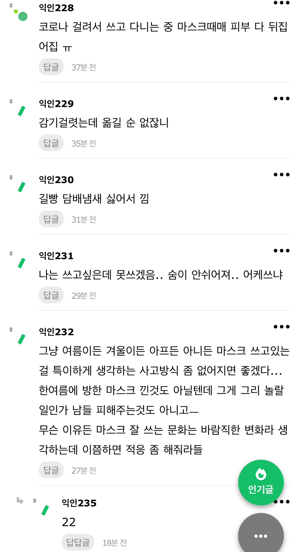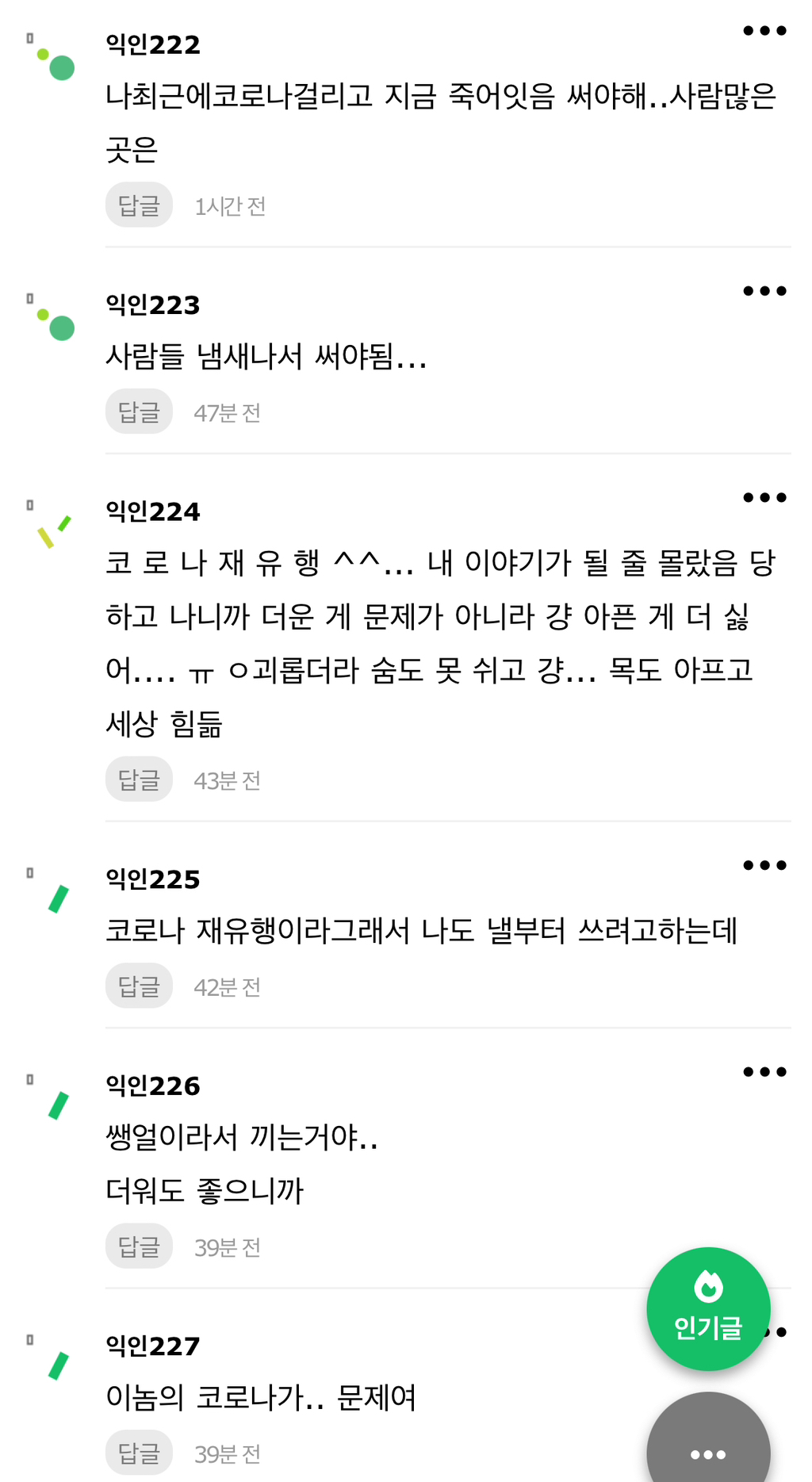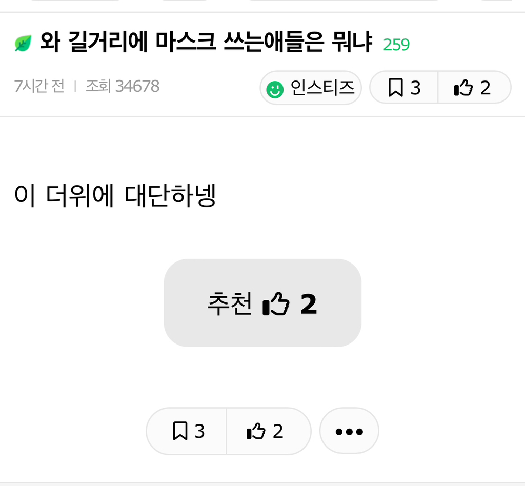 작성자0282942 작성시간 24.08.05 이 날씨에도 감기 기운이 있으면 제발 쓰라구요 마스크 안쓰고 기침하는 인간들 존많아
