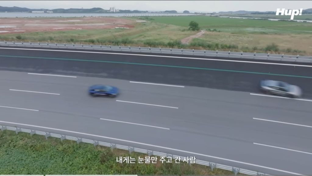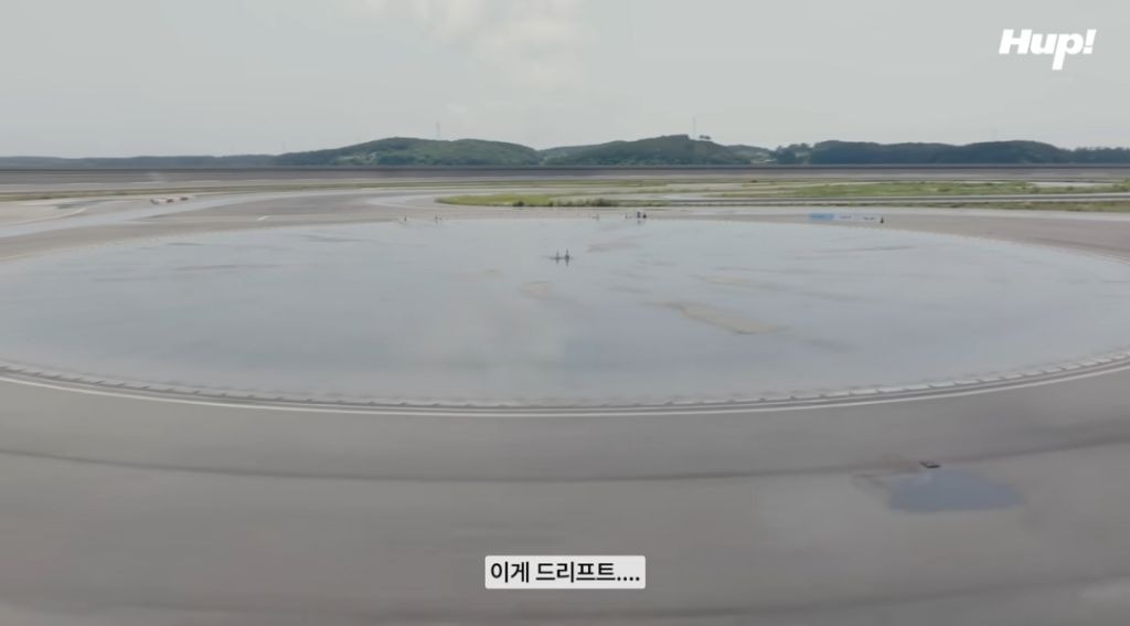주회로를 달리는 차에서 노래 부르는 컨텐츠임