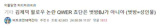 24.08.06 쵸단은 벗방BJ가 아니라는 글을 올려서 핫플이 됐어