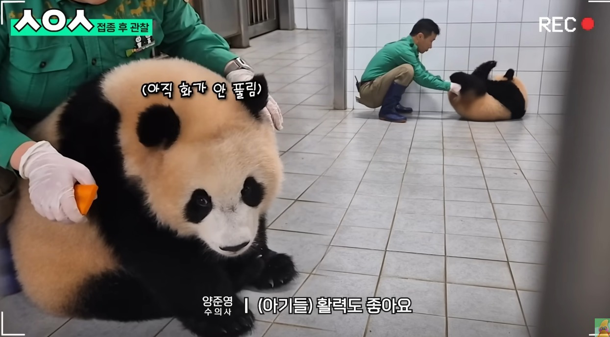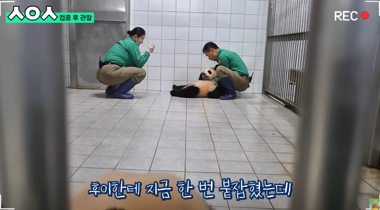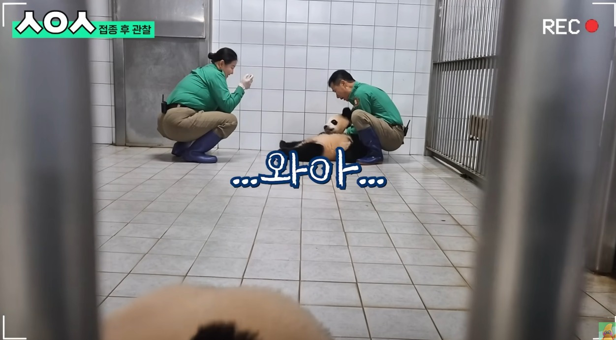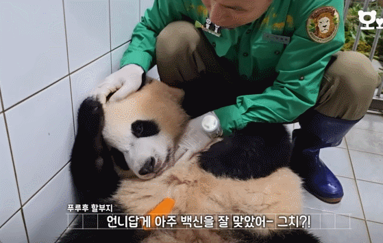 강바오 🧑🏻🌾"후이는 주사 맞을때 까부는데 저는 아주 의젓하게 잘맞았어용 언니니까용"