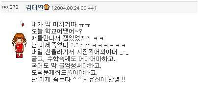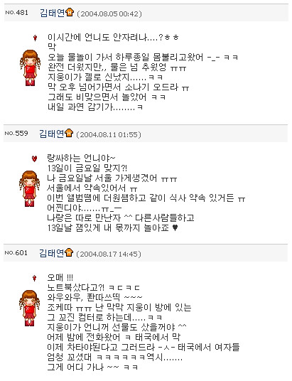 클린하기로 유명했던 태연의 중3 싸이월드 백역사