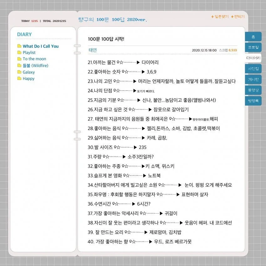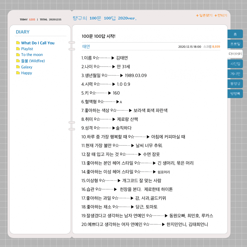 + 추가) 고1이 된 연습생 태연의 싸이월드 백문백답