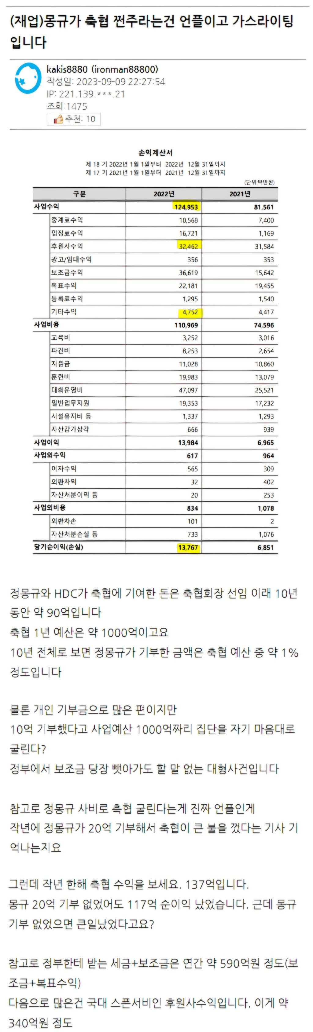 남축구남들이 세금 2천억씩 받으면서 징징댈때