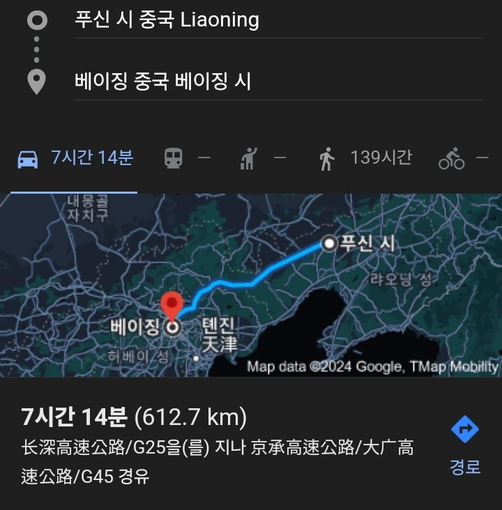 베이징에서 차로 7시간